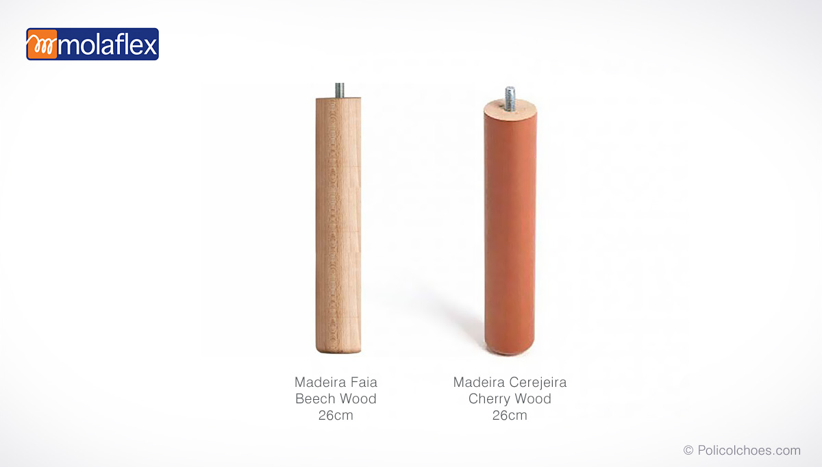 Leg in cherry or beech wood, 26cm high, to be used on the MOLAFLEX Tapimola bed base