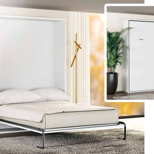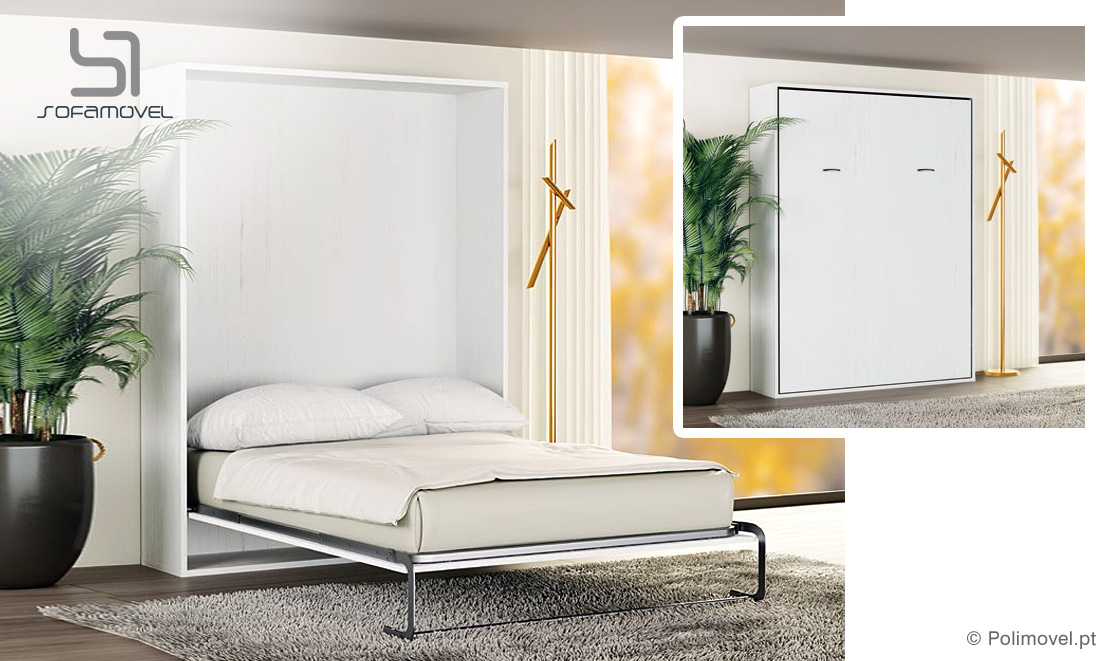 Double vertical wall bed, in laminate, for 190x140cm mattress (not included).