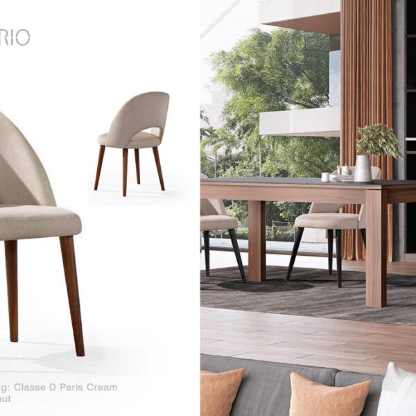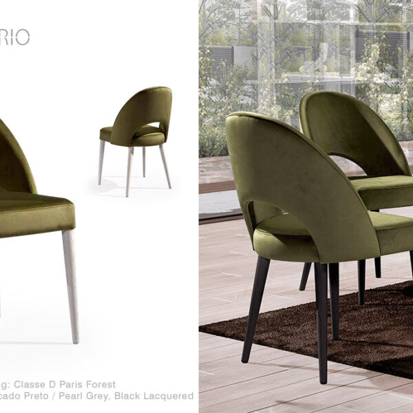 Com assento estofado, para maior conforto, em várias opções de tecido ou da marca ou do cliente, e acabamentos em madeira ou lacado.