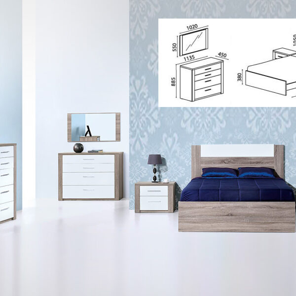 Quarto de Casal LOURINI Paris Carvalho Cinza