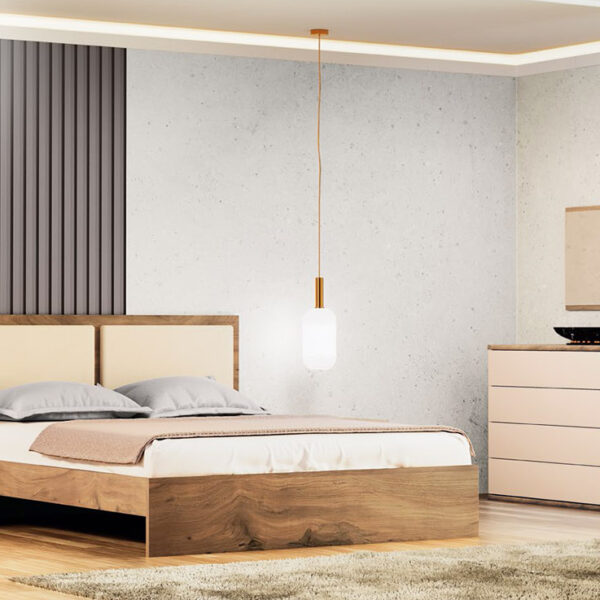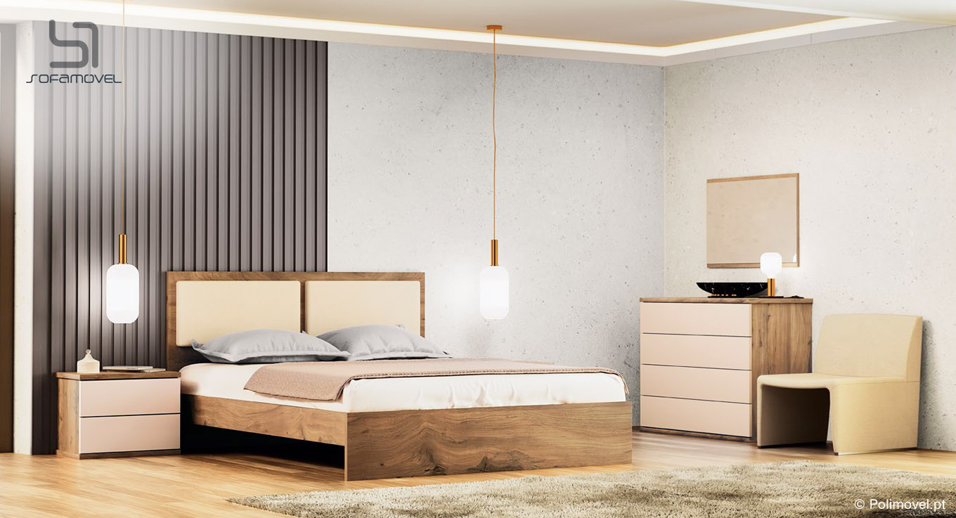 Quarto de Casal em laminado, composto pelos seguintes móveis: