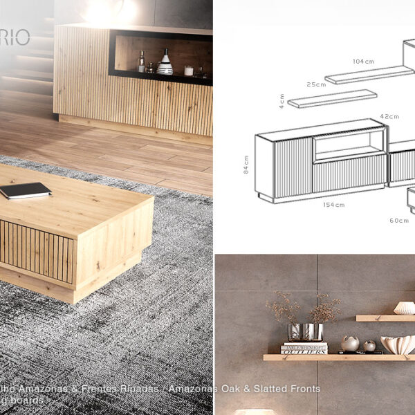 154cm (L) x 42cm (P) x 44cm (A) - Alçado Madeira AQ – Ref. AQ105