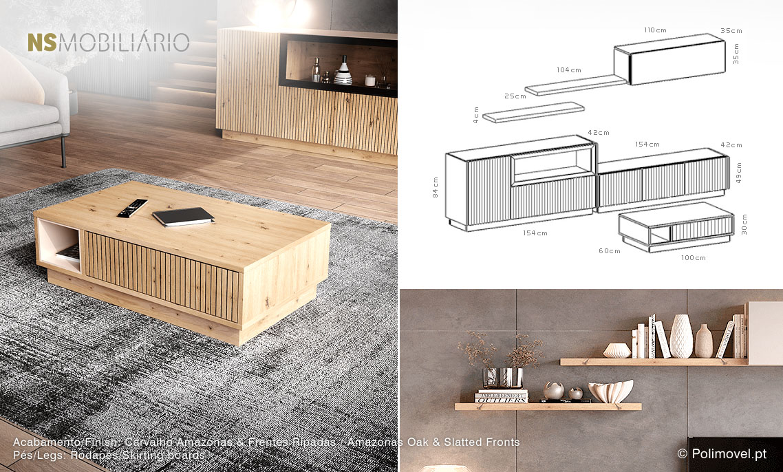 - Opções de Pés ou Rodapés, no Móvel de Bar, Base e Mesa de Centro.