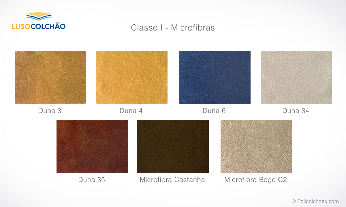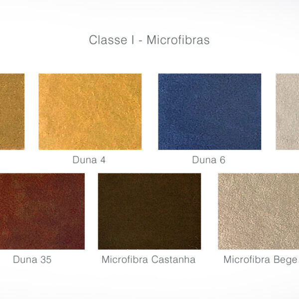 - Revestimento: estofado em microfibras, tecido ou pele sintética.