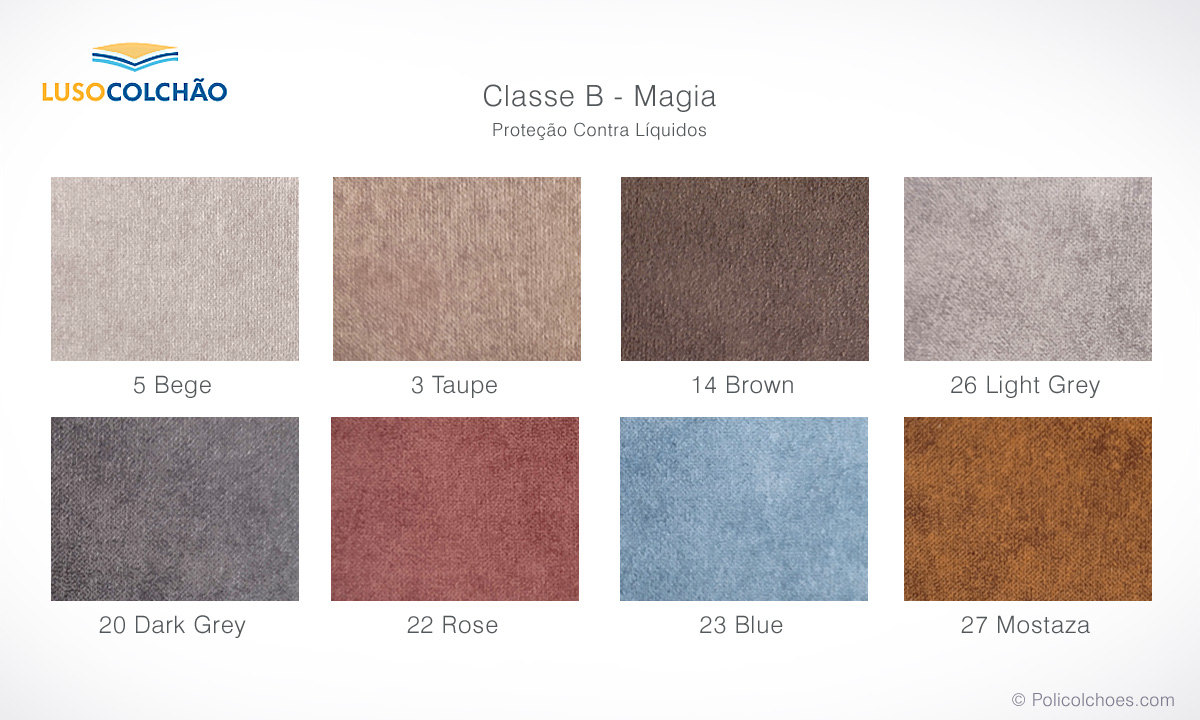 - Classe B – Tecidos Magia, Selena, Boston, Letto e Terra.